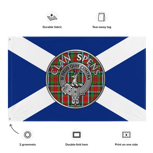 Clan Spens Crest & Tartan on Saltire Flag