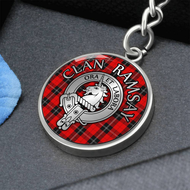 Clan Ramsay Crest & Tartan Pendant Keychain